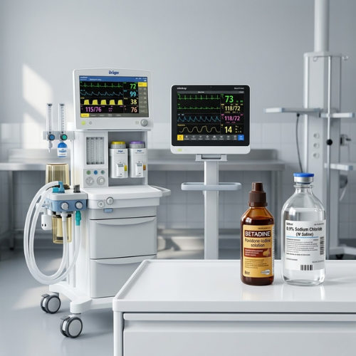 Medimax provides advanced anesthesia equipment, patient monitoring systems, and essential surgical consumables on rent in Hyderabad, offering flexible and cost-effective solutions for hospitals, clinics, and medical professionals. Our rental range includes anesthesia machines, multiparameter patient monitors, Betadine antiseptic solutions, normal saline IV fluid bottles, and povidone iodine solutions to support various medical and surgical needs.